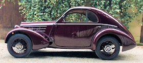 The initial version for SIATA.  So far as I can tell, this car no longer exists.  Carryover details include its general profile (but not the rounded nose), the window profile, and the teardrop-shape fenders -- though even these are not identical.  However, the spirit of the design was retained.