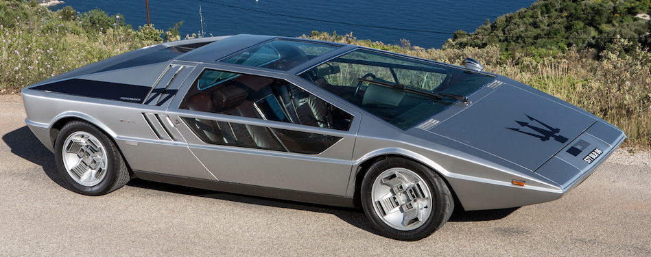 The slant of the windshield is echoed by the front door's forward cutline, the hood cutline and the hood's louvers.